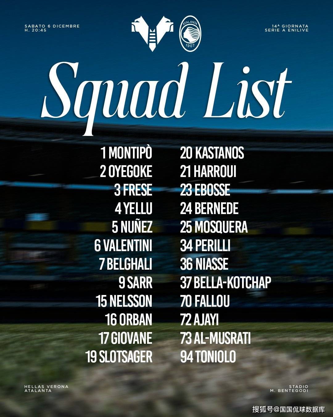 数据库太猛了!昨天里尔,门兴,布雷斯特,米堡等再次全部拿下,依旧是数据库收获满满的一天。周六先聊两场比赛,早上公众号写了一场德甲,大家应该都看到了,这里咱们聊意甲焦点战:维罗纳VS亚特兰大。这两支球队这赛季发挥都不如意啊,前者目前一场未胜积分榜垫底,后者也从欧战区跌到了联赛中游的位置,暂离第十二位,也是这么多年来最差的一个赛季了。